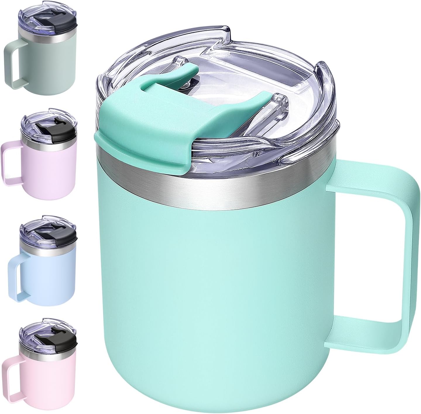 12oz Insulated Coffee Mug Cup with Handle, Stainless Steel Travel Coffee Mug with Flip Lid, Double Wall Vacuum Coffee Tumbler,