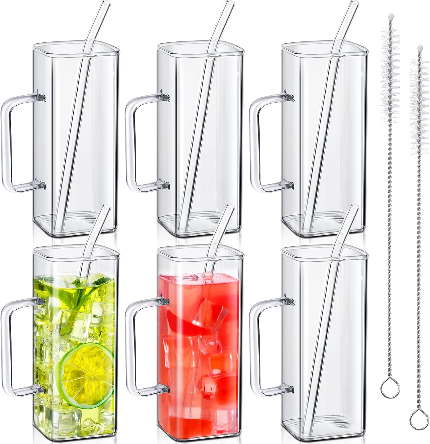 - Meet Your Drinking Needs: there will provide you with 6 pieces of iced coffee cups with handles, 6 pieces of glass straws and 2 pieces of straw brushes, sufficient quantities and practical combinations for iced coffee, beer, cocktail, milk tea, soda, juice and other beverages